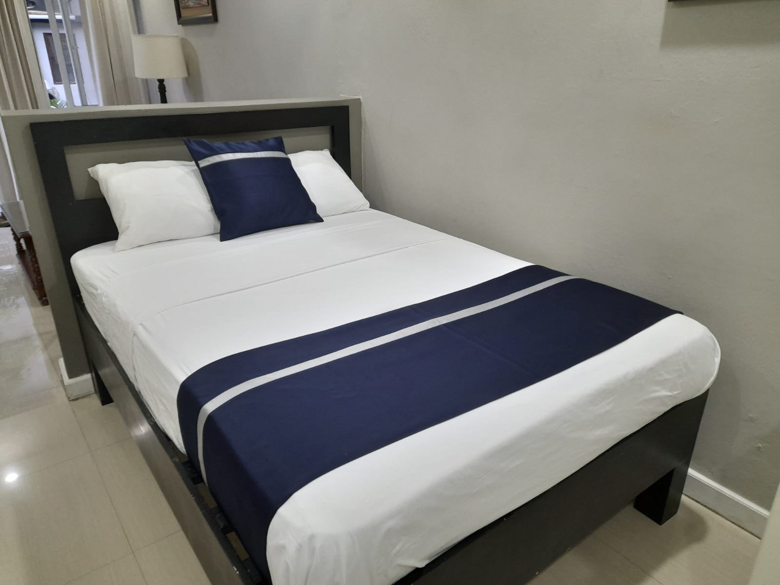 Our Junior studio features a contemporary design with the presence of marble finishes on the countertops and stained wood furniture pieces working together to create a comfortable atmosphere in this open-concept layout.